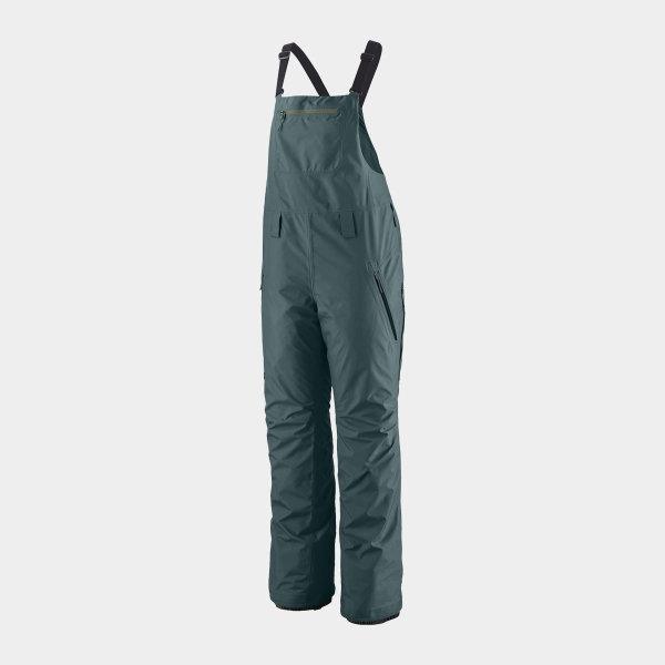 Fully waterproof, PFC-free, two-layer shell fabric are the basis of these blizzard-capable women’s bibs from Patagonia. Hand pockets, a chest pocket, leg vents, built-in gaiters, and some extra microfleece insulation in the rear are the accouterments that make skiers leave them on long after the chairlifts stop spinning.